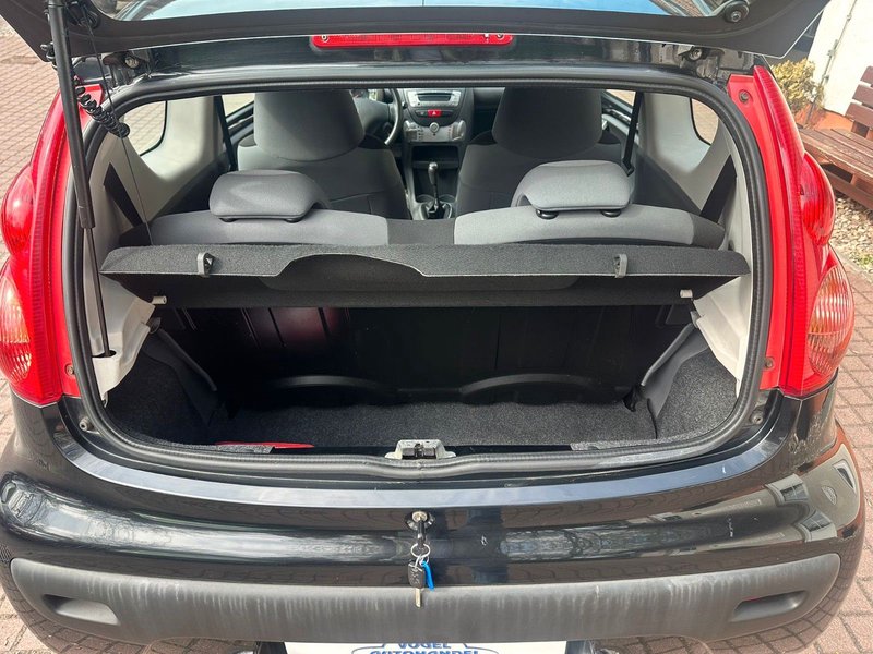 Airbag Fahrer-/Beifahrerseite, Außenspiegel mech. von innen verstellbar, links, Außenspiegel mech. von innen verstellbar, rechts, Bremsassistent, Elektr. Bremskraftverteilung, Gepäckraumabdeckung / Rollo, Heckscheibenwischer, Innenausstattung: schwarz, Karosserie: 3-türig, Lenksäule (Lenkrad) verstellbar, Motor 1,0 Ltr. - 50 kW, Reserverad in Fahrbereifung, Rücksitzbank klappbar, Schadstoffarm nach Abgasnorm Euro 5 (PSA = L6), Seitenairbag vorn, Seitenscheiben hinten und Heckscheibe getönt, Sitzbezug / Polsterung: Stoff, Stoßfänger Wagenfarbe, Warnanlage für Sicherheitsgurte